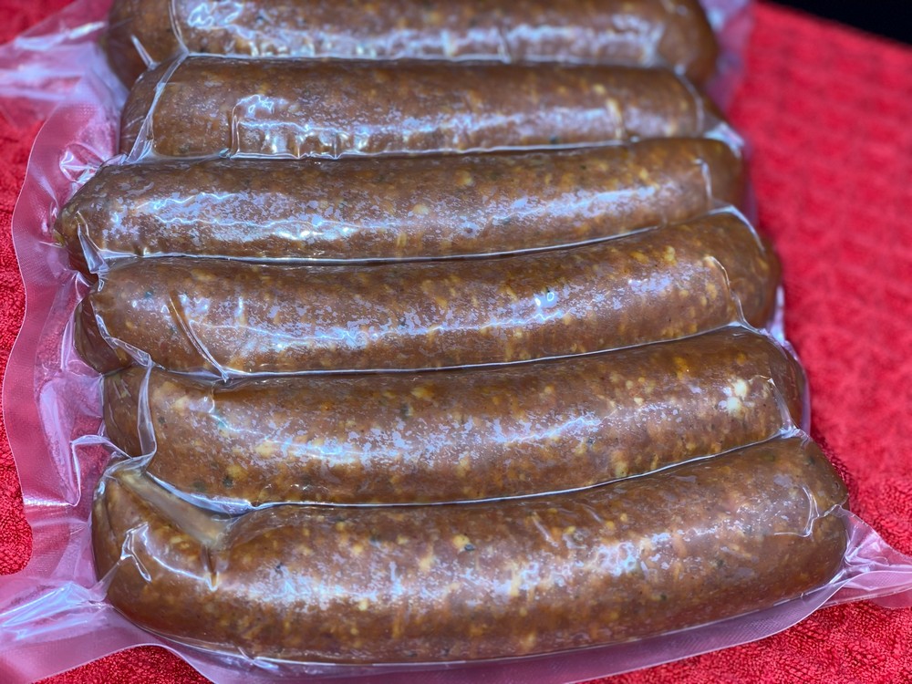 Made and smoked in house. Very flavourful, we like to slice them and fry them up with eggs or add to pasta dishes.