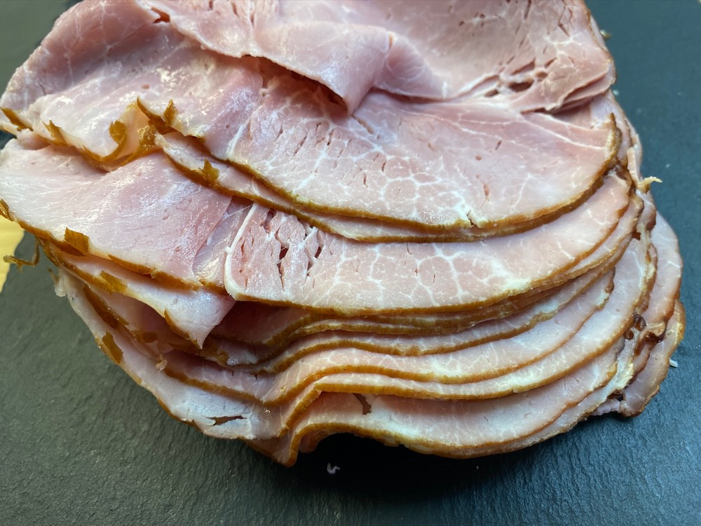 Smoked in house, fully cooked boneless BC pork leg with a touch of maple flavour. Freshly Sliced.