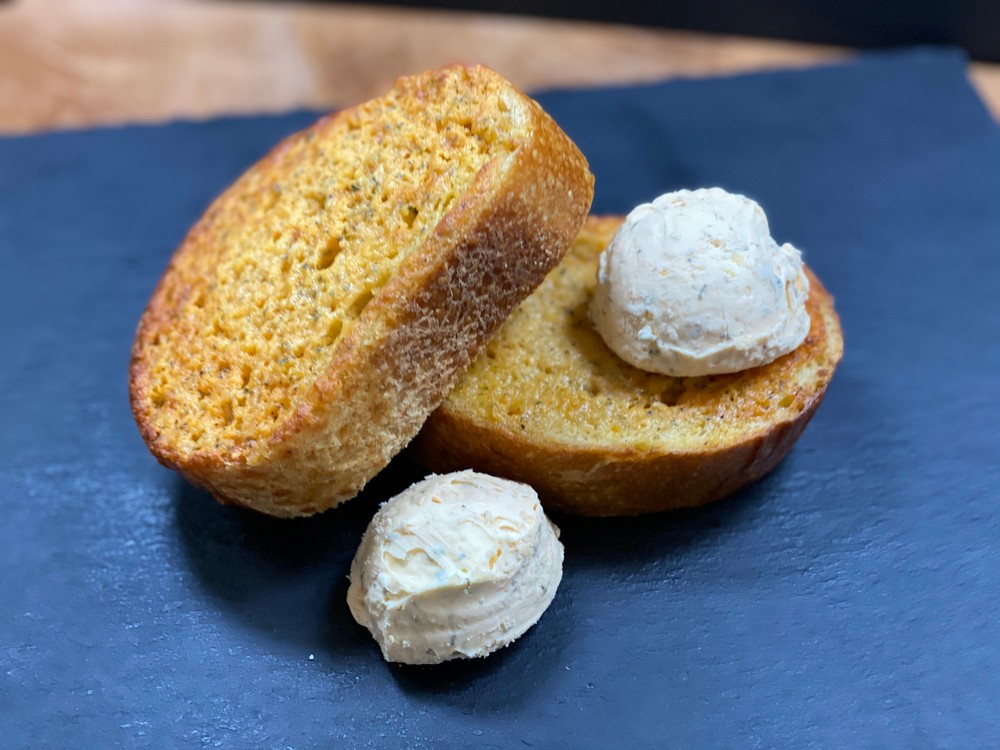 Makes a great spread for your bread, or use to dress your steak. Made in house with butter, cheese, garlic, parsley, black pepper, lemon juice.