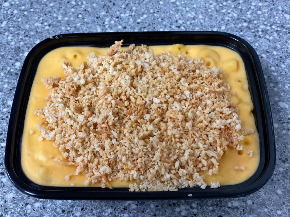 House made cheesy macaroni and cheese topped with a panko crust. Individual and family size servings available, heat and serve.