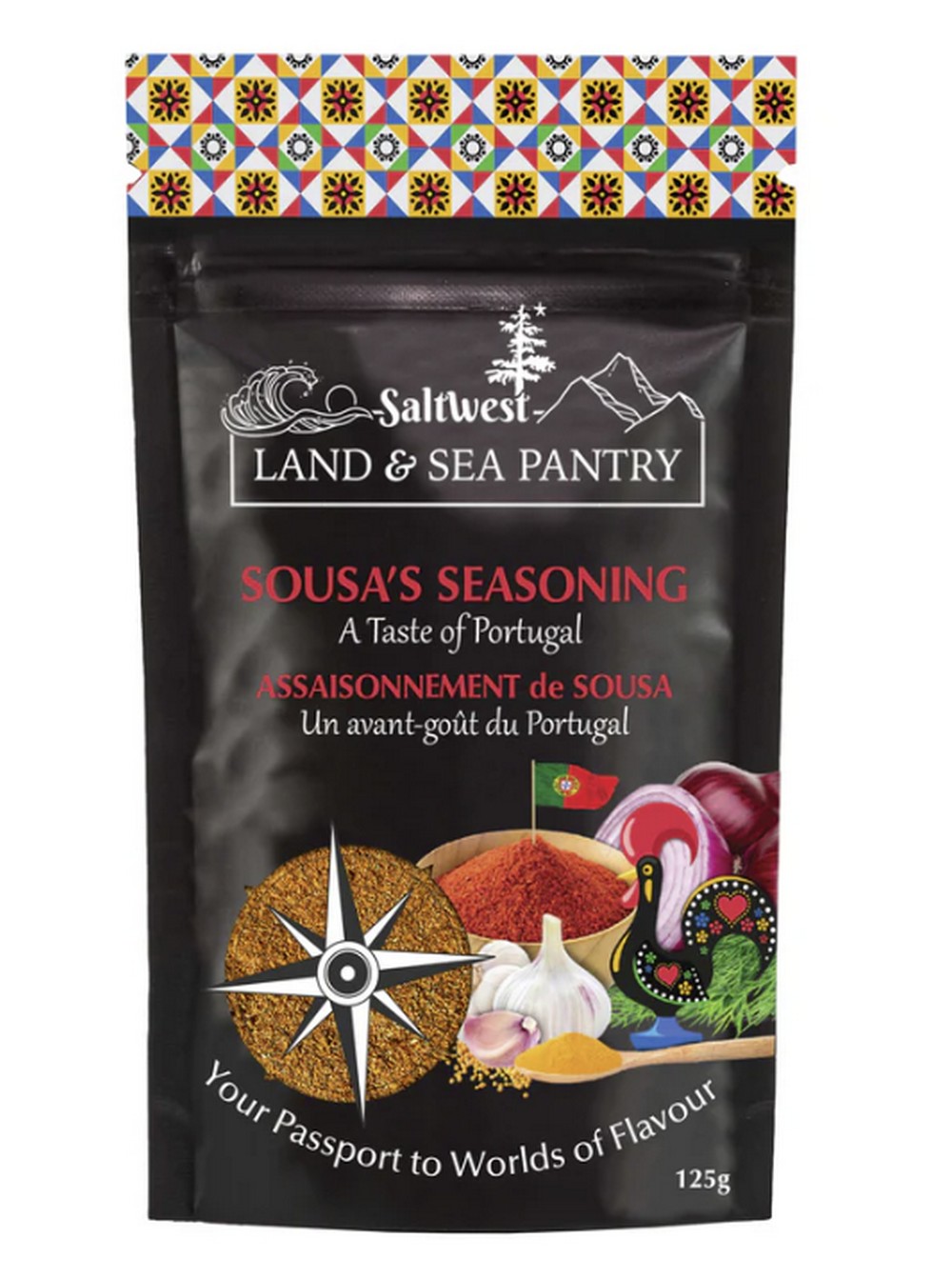 Our Land & Sea Sousa’s Seasoning featuring Portuguese Sea Salt from the Algarve. This seasoning is a family recipe that is influenced by Portuguese roots. Versatile and delicious, we season foods such as barbecued chicken, homemade fries, seafood, and eggs. It is easy to use; rub or just sprinkle to season, you choose. Anchored by Paprika, Garlic, Onion and Mustard makes this special concoction of our Portuguese spices a staple in your spice cupboard. Free from MSG and other preservatives so you can enjoy a healthy all-purpose seasoning.