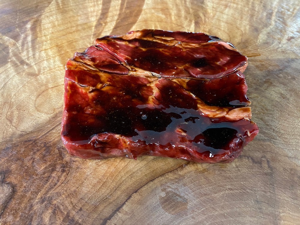 Teriyaki Chuck Steak, rich marbled flavour with a sweet Teriyaki sauce. Ready for the grill!