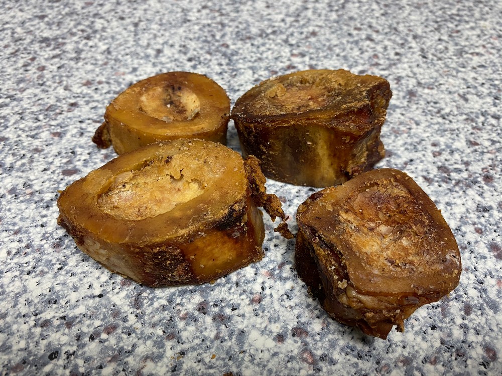 Smoked Beef Marrow bones cut at 1 inch thick.