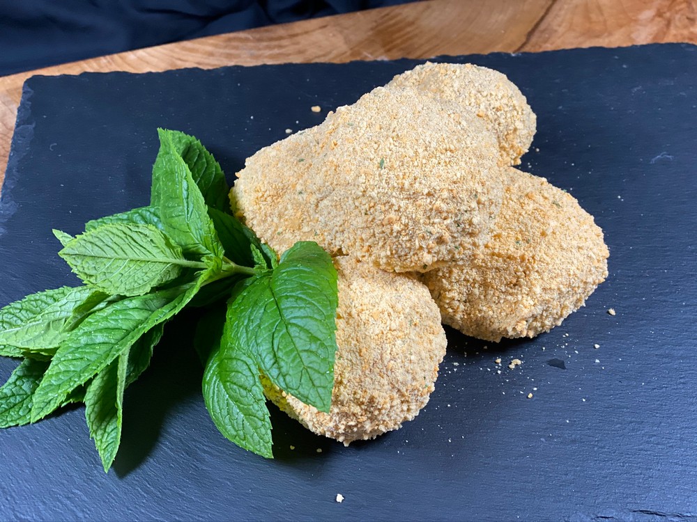 A tenderized chicken thigh wrapped around Jalapeno & Cream Cheese and breaded in our Romano cheese breading.