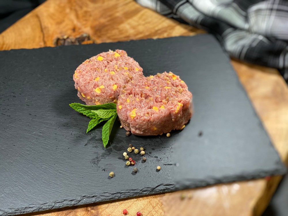 Lean Ground Turkey Thigh mixed with our house made Glenwood Bacon Bits and Cheddar Cheese. Perfect to bake in the oven as is or flatten them out to make burger patties. Available frozen 2 per package.