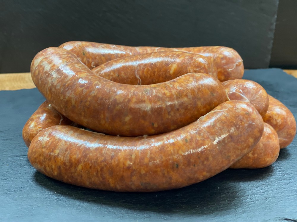 Our house made Chipotle sausages are made in dinner size natural hog casings, approximately 4 per pound. Spicy and Sweet, excellent for the BBQ! Gluten Free.