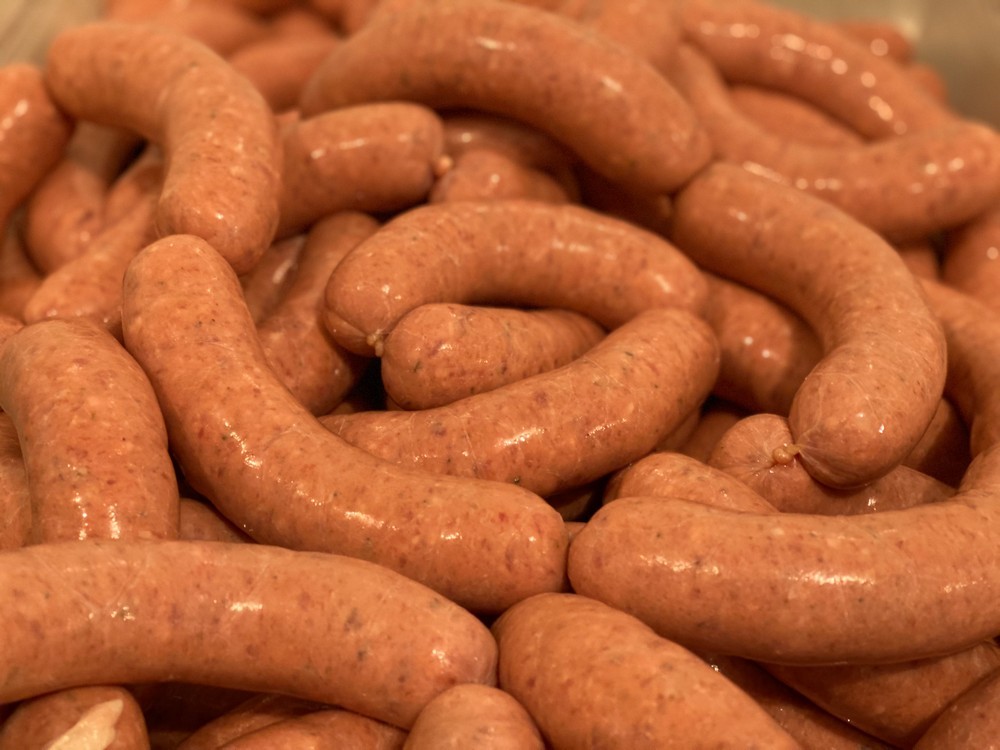 Our house made Classic Hot Italian sausages are made in dinner size natural hog casings, approximately 4 per pound. Gluten Free.