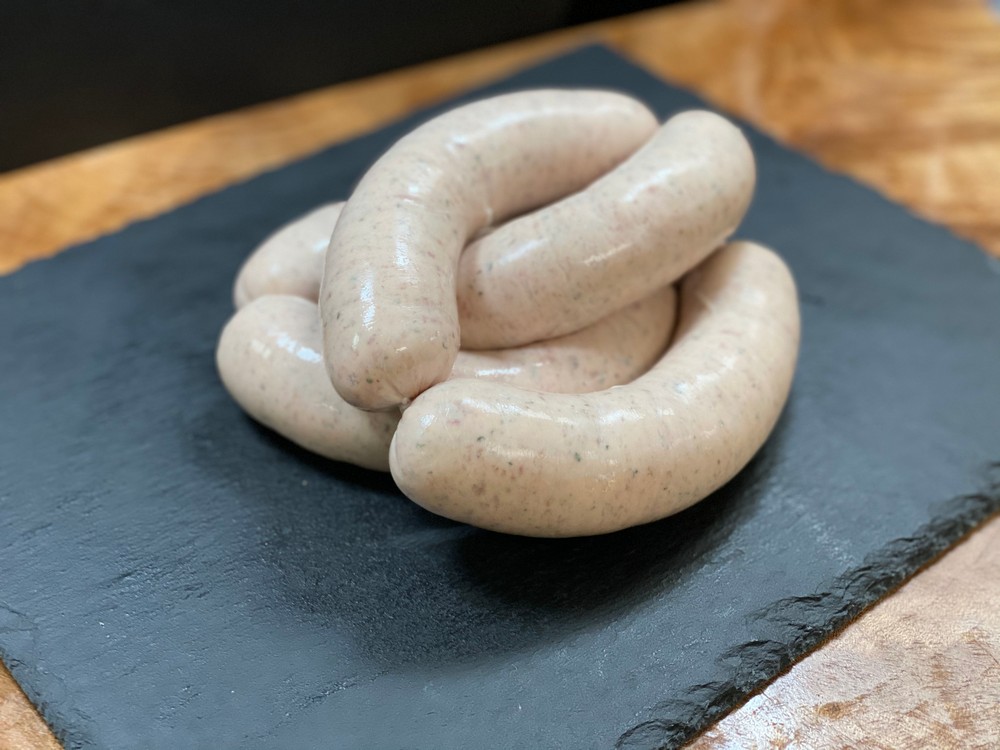 Our house made Oktoberfest sausages are made in dinner size natural hog casings, approximately 4 per pound. Fresh pork and a great mild flavour, crowd pleaser! Gluten Free.
