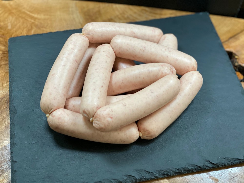 Our house made pork sausages are made in breakfast size casings, approximately 12 per pound. A mild and flavourful classic.